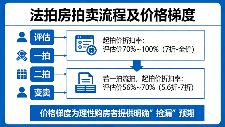 根据司法拍卖规则,法拍房通常需经过评估 - 一拍 - 二拍 - 变卖等阶段。