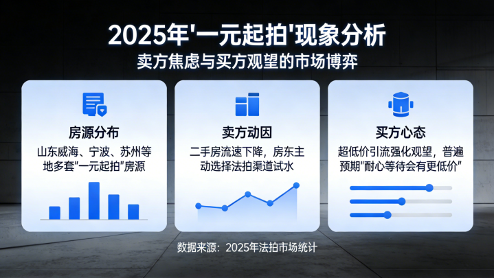 2025年,多地出现多套“一元起拍”房源,部分房东因二手房流速下降,主动选择通过法拍渠道试水。这种“超低价引流”策略进一步强化了买方的观望心态:既然市场存在极端低价可能,为何要在普通起拍价的一拍阶段贸然出手?买方普遍预期,只要耐心等待,总会出现更具吸引力的价格。